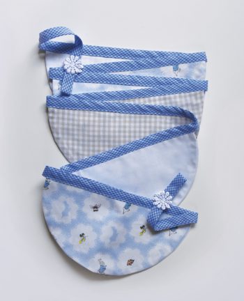 This bright and fresh bunting has a lovely combination of soft apricot and lemon tones and two types of floral patterns also featuring 3 lace trims, that will brighten up any little girls bedroom. It can be hung on a wall or diagonally across the corner of a room as the designs can be viewed from both sides. Bunting length is 210cm plus 35cm of extra length each end for hanging/tying. Apricot Blossom features 12 flags sized at 16cm wide x 19cm deep with various alternating patterns.