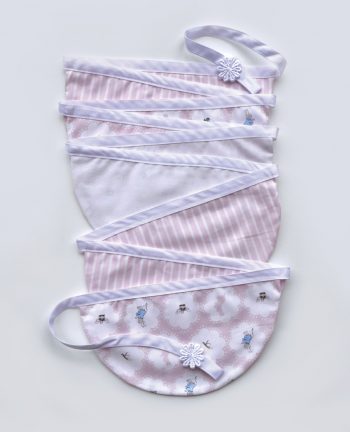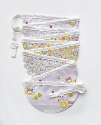 This bunting features 12 flags sized at 16cm wide x 19.5cm deep with alternating patterns. Can be hung on a wall or diagonally across a room as the designs can be viewed from both sides. Flag length is 210cm plus 15cm of extra length each end for hanging. Soft lemon bias and detailed rosettes on the ends of the ties bring together a quality piece to suit any baby girls nursery.